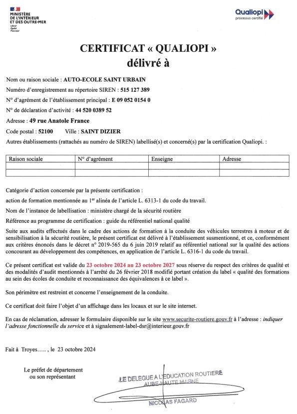 Auto Ecole SAINT URBAIN à Saint-Dizier